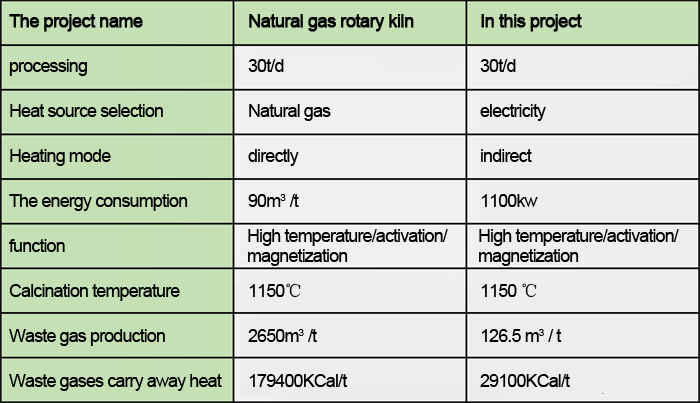 The amount of waste gas produced by traditional natural gas rotary kiln calcination is 21 times that of this project; Waste gas heat removal is 6.2 times of the project.