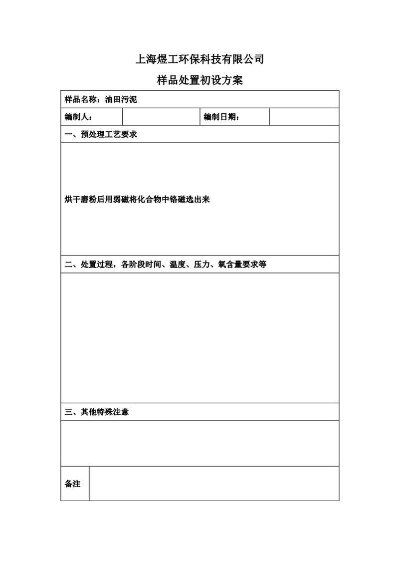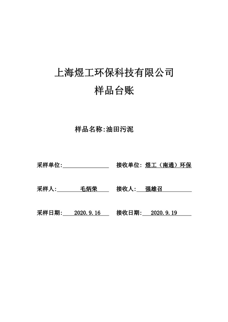 煜工環(huán)保油田污泥樣品試驗(yàn)報(bào)告