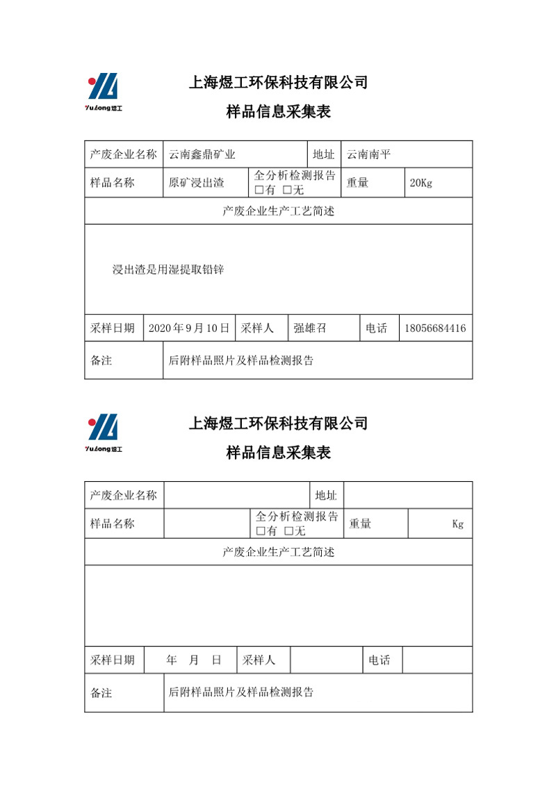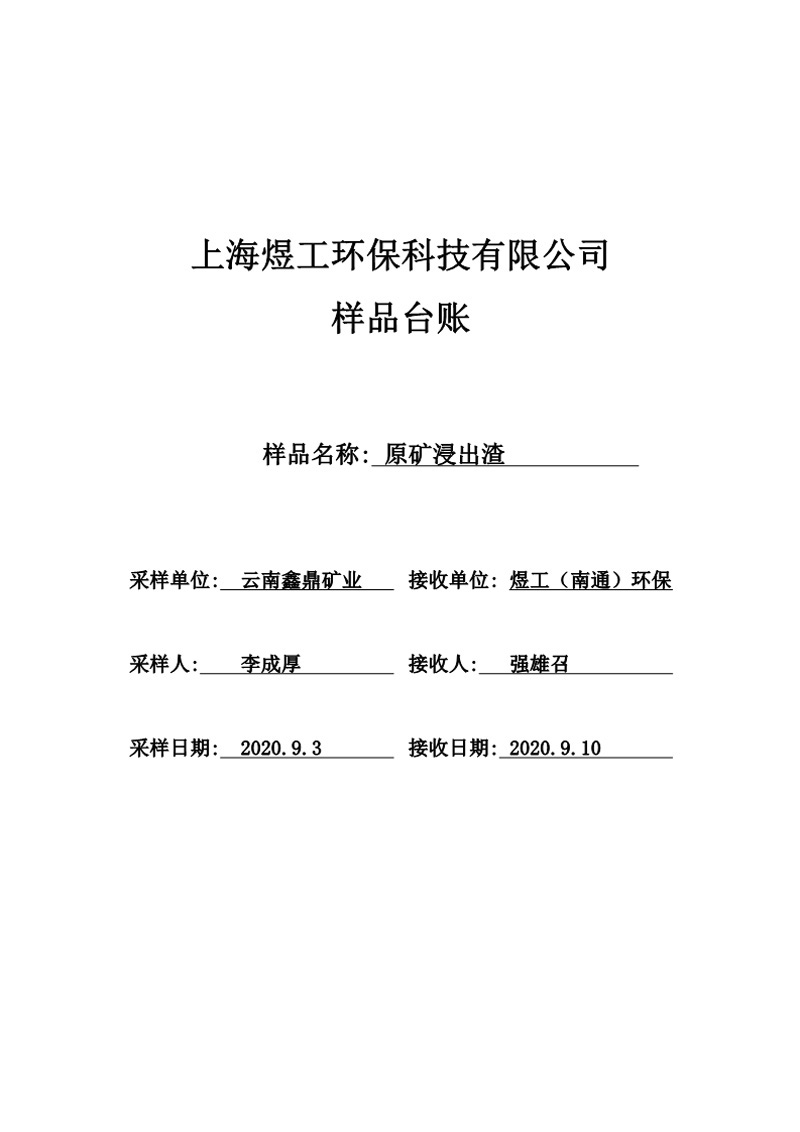 煜工環(huán)保原礦浸出渣樣品試驗報告